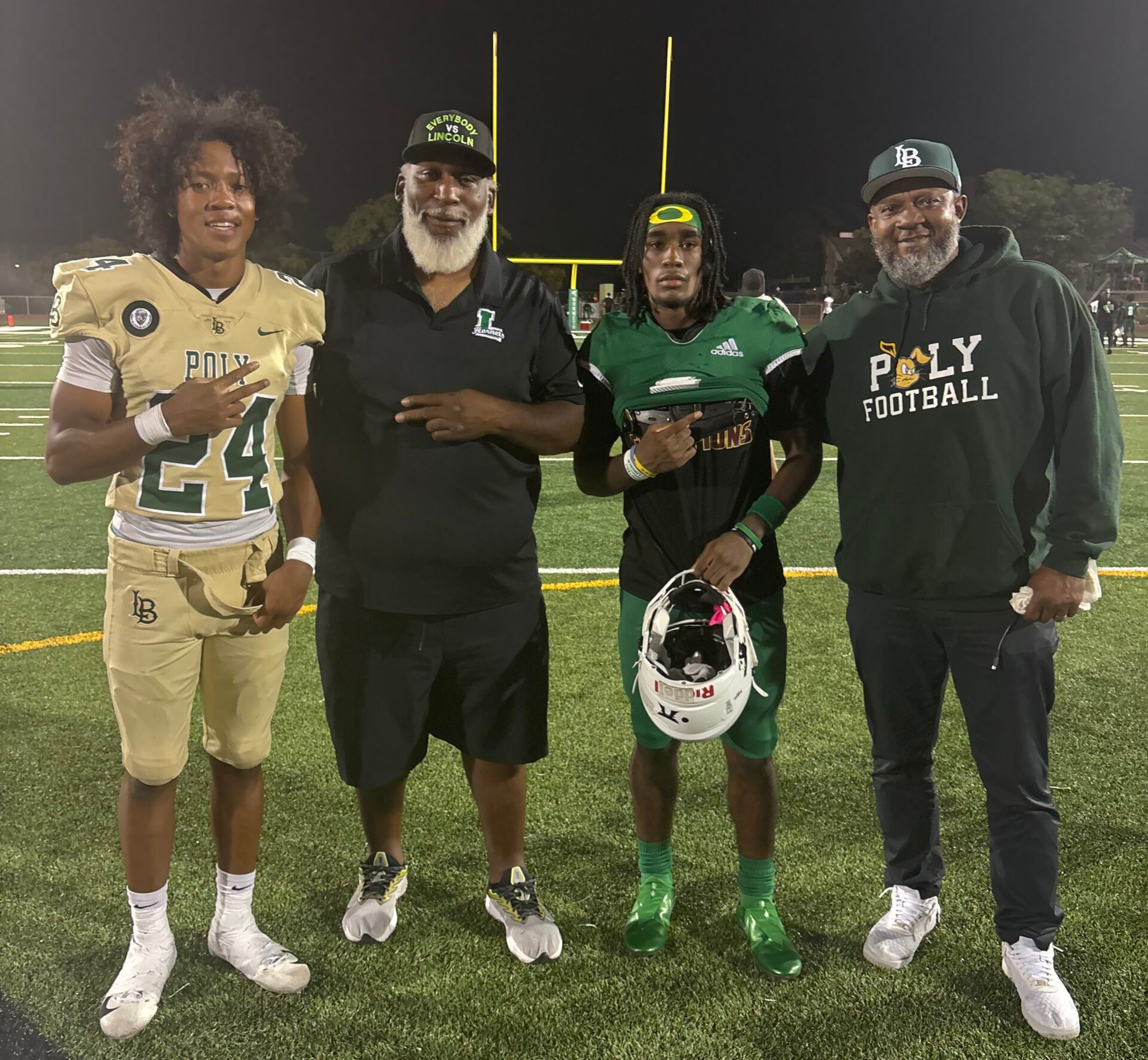 Word of the situation reached Coach Dunn, who, instead of seeing an opportunity to gain a competitive edge, chose integrity. Out of his own pocket, the former NFL wide receiver and leader of the Hornets ordered a full spread of Jersey Mike’s sandwiches and drinks for the Poly team to ensure they were nourished and hydrated before taking the field. He also agreed to push the game’s 7:00 p.m. kickoff back nearly an hour to allow the Jackrabbits proper warmup and prep time.